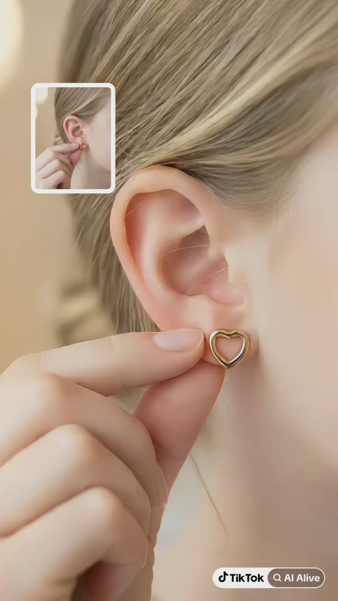 Aretes corazón abierto en oro amarillo 18K con cierre de tuerca 💛✨