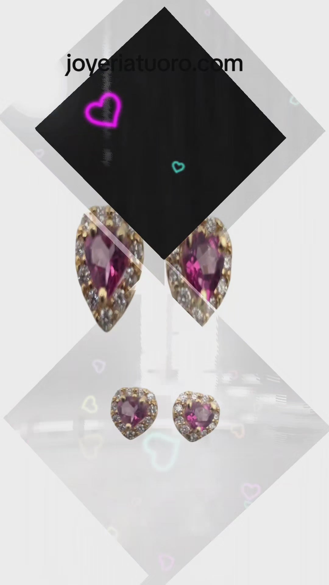Aretes corazón con topacio rosado y diamantes en oro amarillo 18K 💖✨