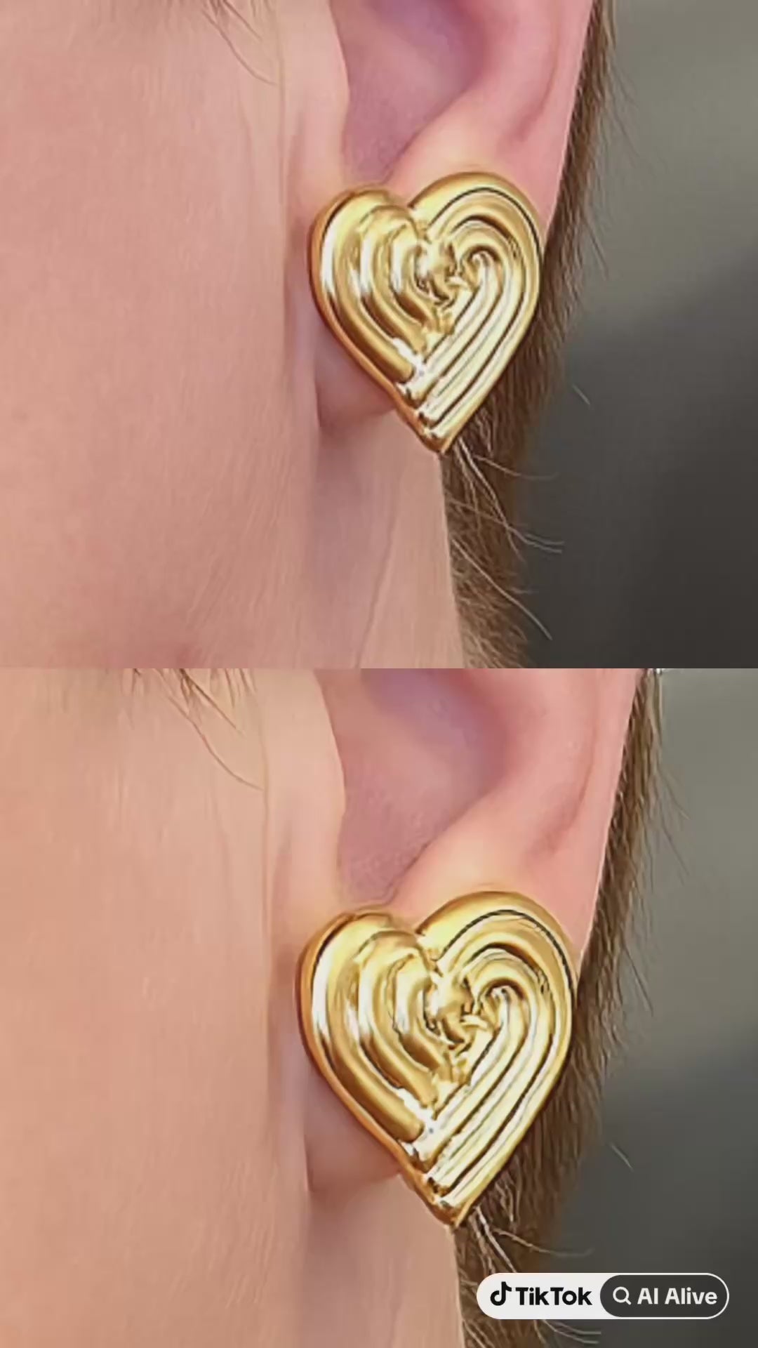“Arete de botón ondulado N.º 1 en oro 14k con cierre omega, medidas 20 x 13 mm, vista frontal y trasera