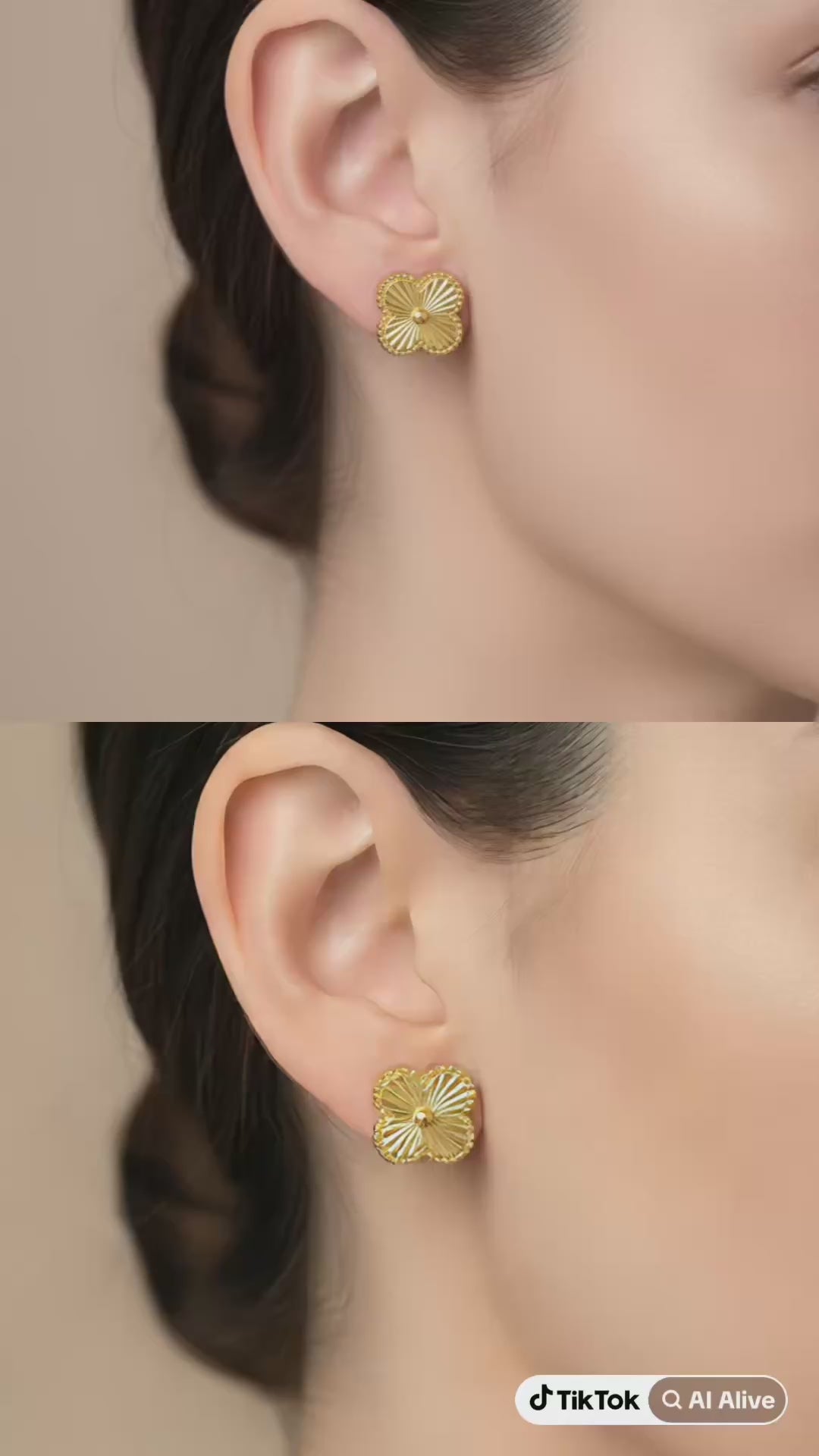 Arete pequeño en oro 14K con cierre de rosca, diseño de trébol en relieve de 5 mm, elegante y delicado.