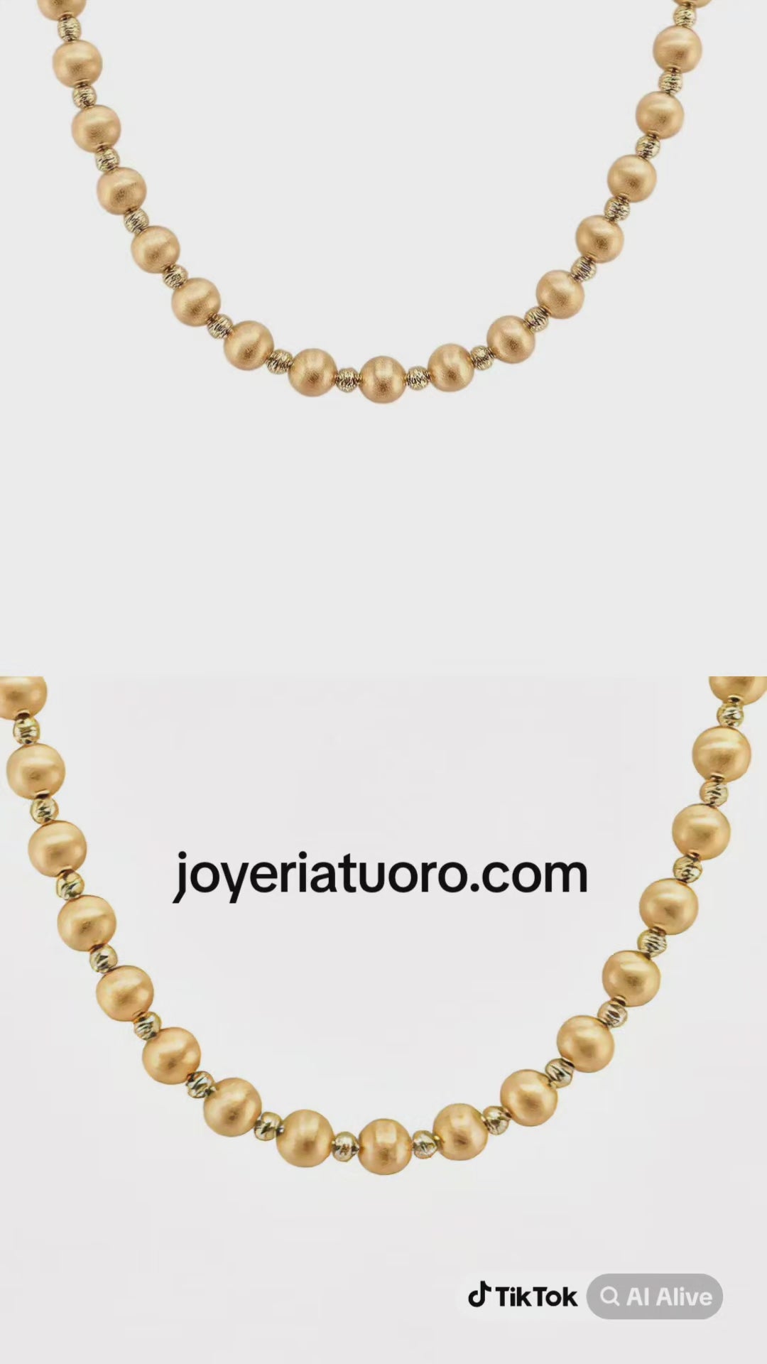Cada bolita está unida de manera segura mediante una cadena interna tipo rolo de Oro 14K, lo que le da mayor resistencia y durabilidad en comparación con collares de nylon o plástico. Esto garantiza una pieza de alta calidad, perfecta para uso diario o para lucir en ocasiones especiales.