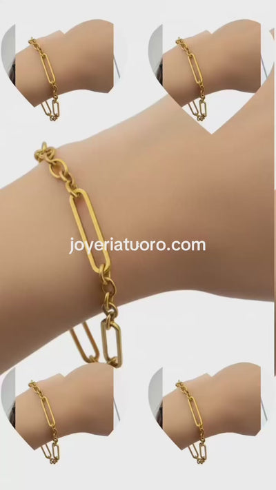 Pulsera eslabón paperclip en Oro 14K con cierre langosta