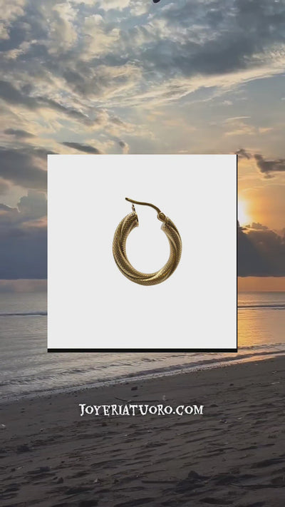 Argollas torcidas satinadas de oro 14K, grosor 4 mm, varios tamaños - Joyería TuOro