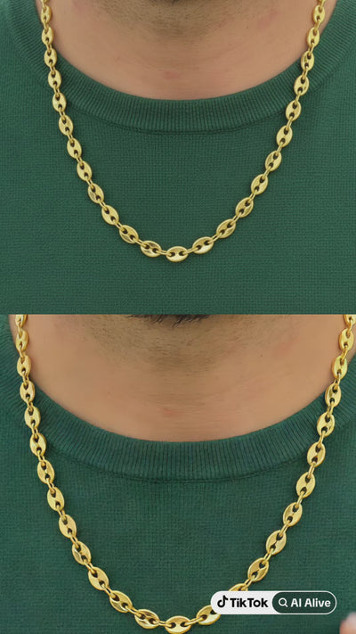 La Cadena Grano de Café 7.5 mm Oro 14K, también llamada cadena Gucci, es un diseño elegante y robusto que destaca por sus eslabones ovalados con corte central. Con un grosor imponente de 7.5 mm, esta cadena ofrece una presencia llamativa ideal para quienes buscan una joya de alto impacto y durabilidad. El brillo del Oro 14K resalta en cada detalle, convirtiendo esta pieza en un accesorio imprescindible para ocasiones especiales o para quienes desean un estilo distintivo todos los días. La Cadena Grano de Café 7.5 mm Oro 14K es perfecta para llevar sola como protagonista o acompañada de un dije exclusivo.